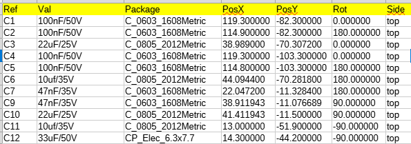 Plik położeń elementów zawiera w sobie wszystkie informacje potrzebne do montażu elementów SMD.